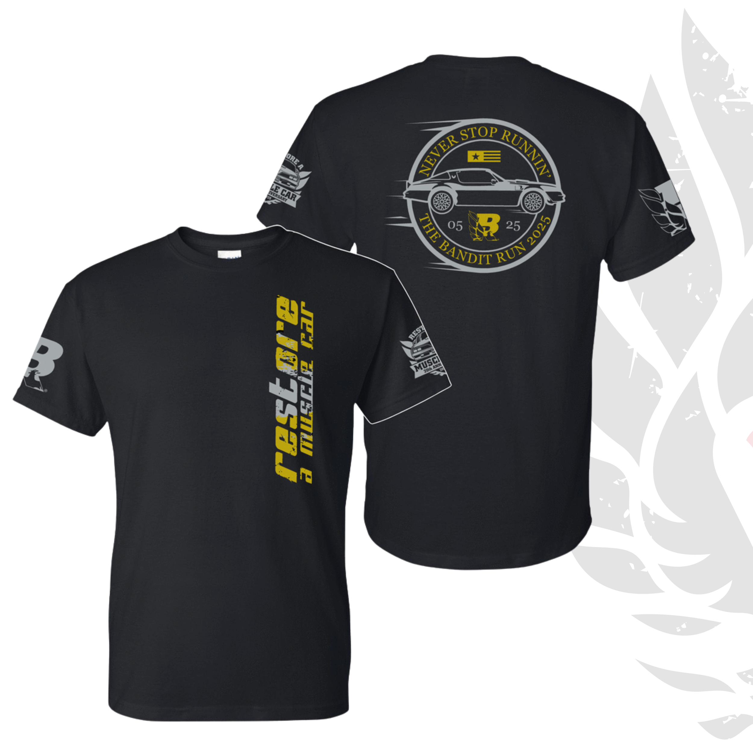 Bandit Run Gear Categories: All Gear parts Clothing Hats Hoodies Outerwear T-Shirts Accessories Bandit Run Gear Man Cave & Garage Art Decals All Gear parts Clothing Bandit Run Gear Man Cave & Garage Art Decals Pontiac Firebird Trans Am Bird Christmas Tree Topper; Gold/White Sale Price: $50.00 Original Price: $60.00 Sale 'The Bandit' Burt Reynolds Autographed Signed Trans Am Glove Box Door COA $895.00 Pontiac Firebird Trans Am Bird Christmas Ornament 2-Sided; Green and Red Sale Price: $15.00 Original Price: $25.00 Sale 'The Bandit' Burt Reynolds Autographed Signed 8.5x11 inch Photo with COA $195.00 Sold Out 'The Bandit' Burt Reynolds Autographed Signed Trans Am Glove Box Door COA $895.00 Sold Out 1977 Pontiac Trans Am Bandit 18-inch Light Up Mancave Wall Display Shelf Sale Price: $198.50 Original Price: $245.00 Sale 2025 Bandit Run Restore a Muscle Car Non-Woven Tote Bags $10.00 2025 Bandit Run "Event Shirt" Premium T-Shirt from $35.00 2025 Bandit Run "Never Stop Running" Premium T-Shirt - Gold from $35.00 2025 Bandit Run "Never Stop Running" Premium T-Shirt from $35.00 2025 Bandit Run "20th Anniversary" Premium T-Shirt - White from $35.00 Honeycomb Under Brim RaMC Premium Bandit Run Fitted Hat $35.00 Burt Reynolds Signature Bandit Embroidered Premium Fitted Underbrim Printed Hat (Limited Run) $35.00 Old Favorite Restore a Muscle Car Bandit Run Trucker Hat with TA Bird $35.00 Mid-Pro Snapback Restore a Muscle Car TA Bird Trucker Hat in Gray/Black $35.00 Cut Above Sport Hat Gray Trans Am Restore a Muscle Car Patch $35.00 Mid-Pro Snapback Restore a Muscle Car TA Bird Trucker Hat in Digital Camo $35.00 2025 Bandit Run Vinyl Banner 30"x36" $50.00 Bandit Run Leather Patched Trucker Hat - Gray/Black $35.00 New Version 'Burt Reynolds - The Legend, The Bandit' Signature Decal from $5.00 Bandit Run Restore a Muscle Car Drawstring Bags Sale Price: $10.00 Original Price: $15.00 Sale Pontiac Firebird Bandit Trans AM 1:18 Scale Diecast Model - Maisto Special Edition $99.95 2024 Bandit Run "BluePrint" Edition Premium T-Shirt V2 from $35.00 2024 Bandit Run 'Motor City' Event Hat Sale Price: $15.00 Original Price: $35.00 Sale 2024 Bandit Run "Event Shirt" Edition Premium T-Shirt Sale Price: $20.00 Original Price: $35.00 Sale Restore "Need Money for Trans Am" Edition Premium T-Shirt - Black $35.00 New Release Bandit Run Logo Mid-Pro Sport Hats $35.00 The BANDIT Signature Edition Hat with Velcro Band $35.00 2024 Bandit Run Logo Diecut Premium Rubber Keychain Sale Price: $10.00 Original Price: $14.95 Sale 2025 15" Bandit Run Decals $25.00 2025 Bandit Run Custom Metal RGB LED Lighted Sign - Mancave Art Sale Price: $225.00 Original Price: $265.00 Sale 2024 Bandit Run Vinyl Banner 30"x36" Sale Price: $50.00 Original Price: $70.00 Sale 24x36 Matte Poster - 'TA Blueprint’ $40.00 New Bandit Run Acrylic Hat Pin $10.00 NEW RELEASE LARGE BANDIT RUN EMBROIDERED PATCH $10.00 New Release Bandit Run Embroidered Patch $10.00 12" BANDIT RUN FEATHERS DECALS $10.00 Bandit Run Decal BR 6"x7" Vinyl $10.00